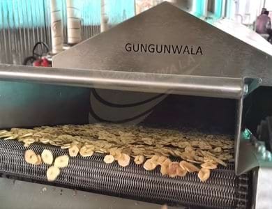 Efficient and automated system for producing crispy, uniform, and perfectly fried banana chips with consistent quality and taste.